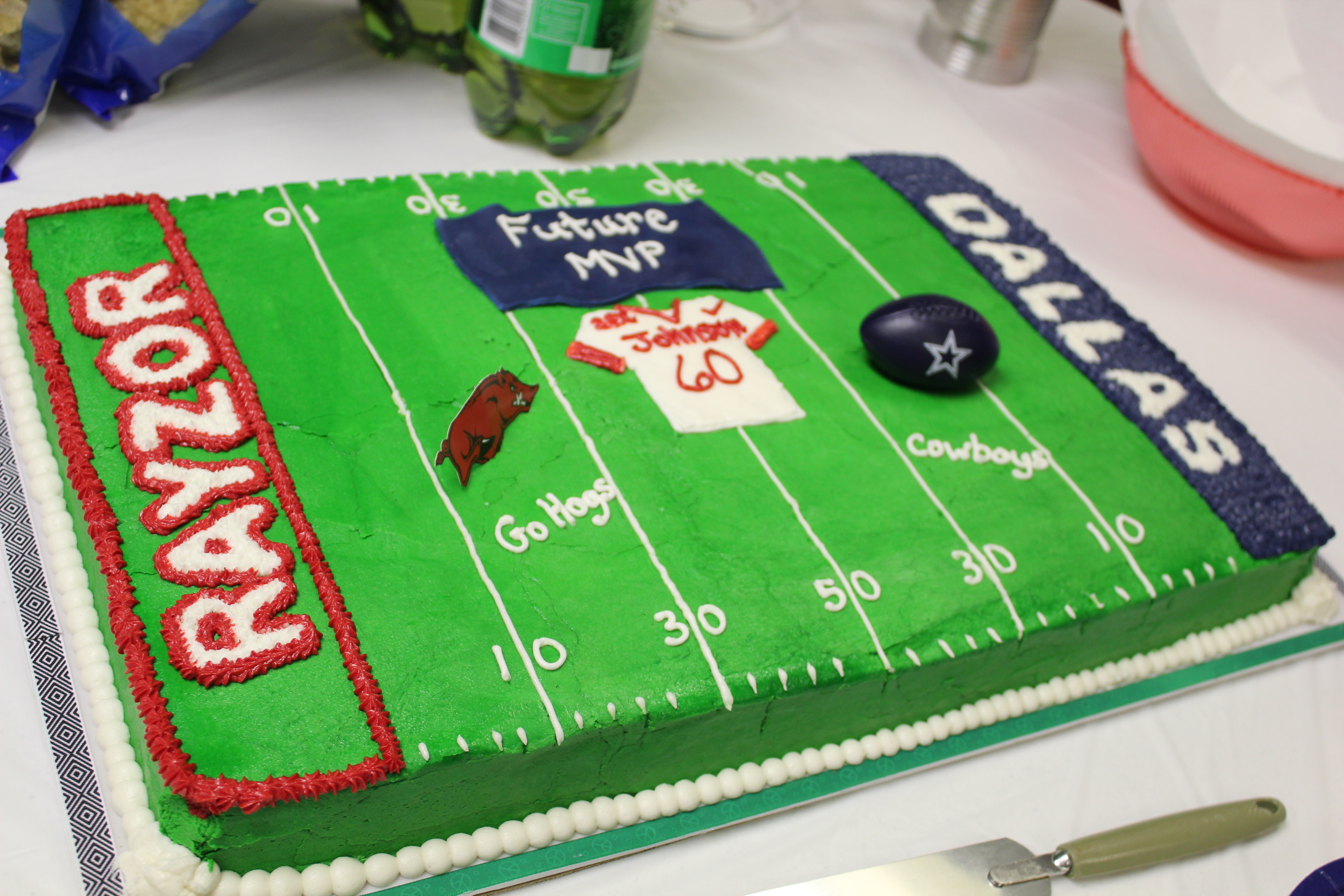 The cake was Arkansas Razorbacks and Dallas Cowboys themed.