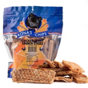 The company’s first and most popular product is the original Kona’s Chips Chicken Jerky Crunch Sticks. These delectable treats are made from a single ingredient: chicken breast. They are free from preservatives, and, like all of Kona’s products, are made in the USA from 100 percent USDA chicken. These crunch sticks are perfect for customers who are training their furry friends, or for breeders.